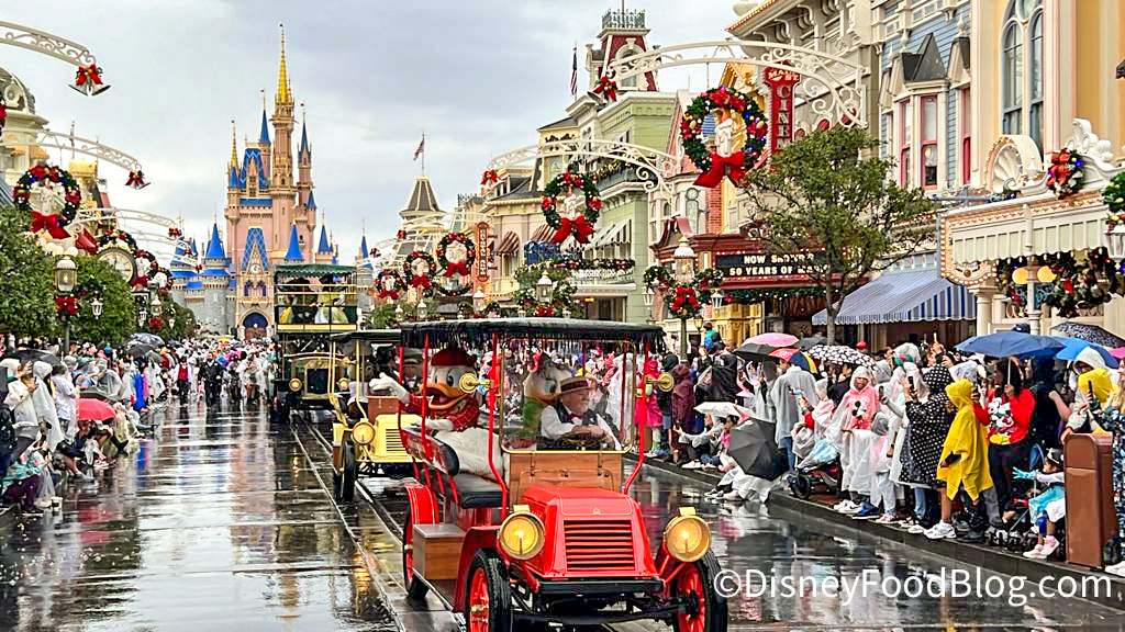 Unfortunately, the persistent rain canceled the show, but we got to see the Rainy Day Cavalcade instead! At this time, no other parade times have been announced as canceled.