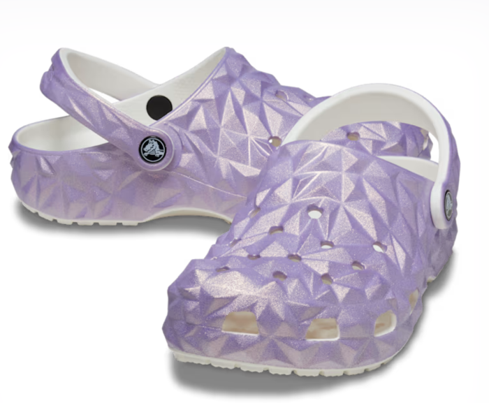 WOW. Look at these shimmery purple Crocs. They’re so fun! We’re already imagining a fun EPCOT-inspired outfit paired with these sparkly shoes. The possibilities are endless!