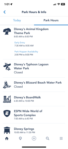 Any time you’re in Disney World between November and February, we suggest checking the Disney World app for potential closures of the water parks. They do occur (some years, more frequently than others) and it can be hard to predict when. So stay up to date by checking the park times in the app!