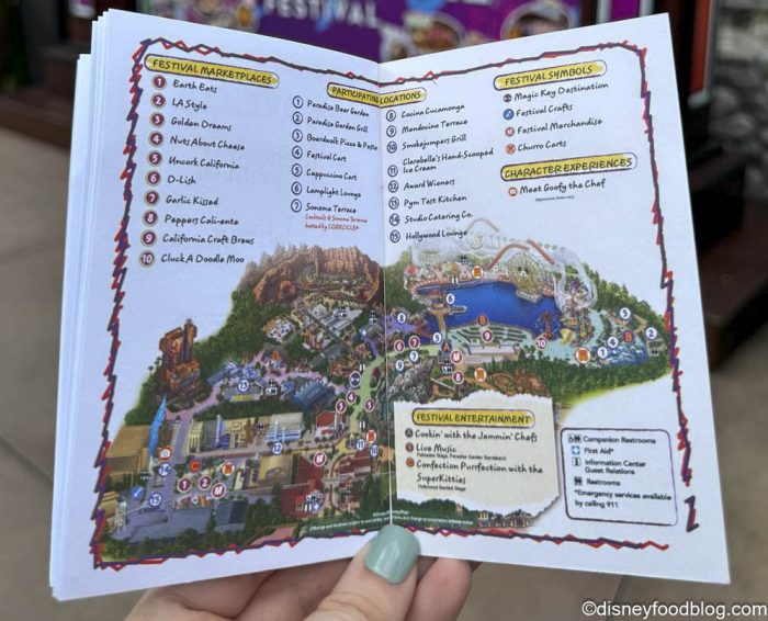 The 2024 DCA Food and Wine Festival featured 10 Festival Marketplaces, along with additional kiosk locations, and Downtown Disney spots, too. One new booth joined the lineup in 2024 — Earth Eats!