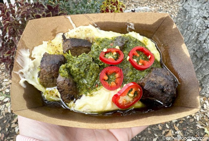 - Grilled Top Sirloin with roasted garlic-gruyère smashed potatoes and black garlic chimichurri – $9.00