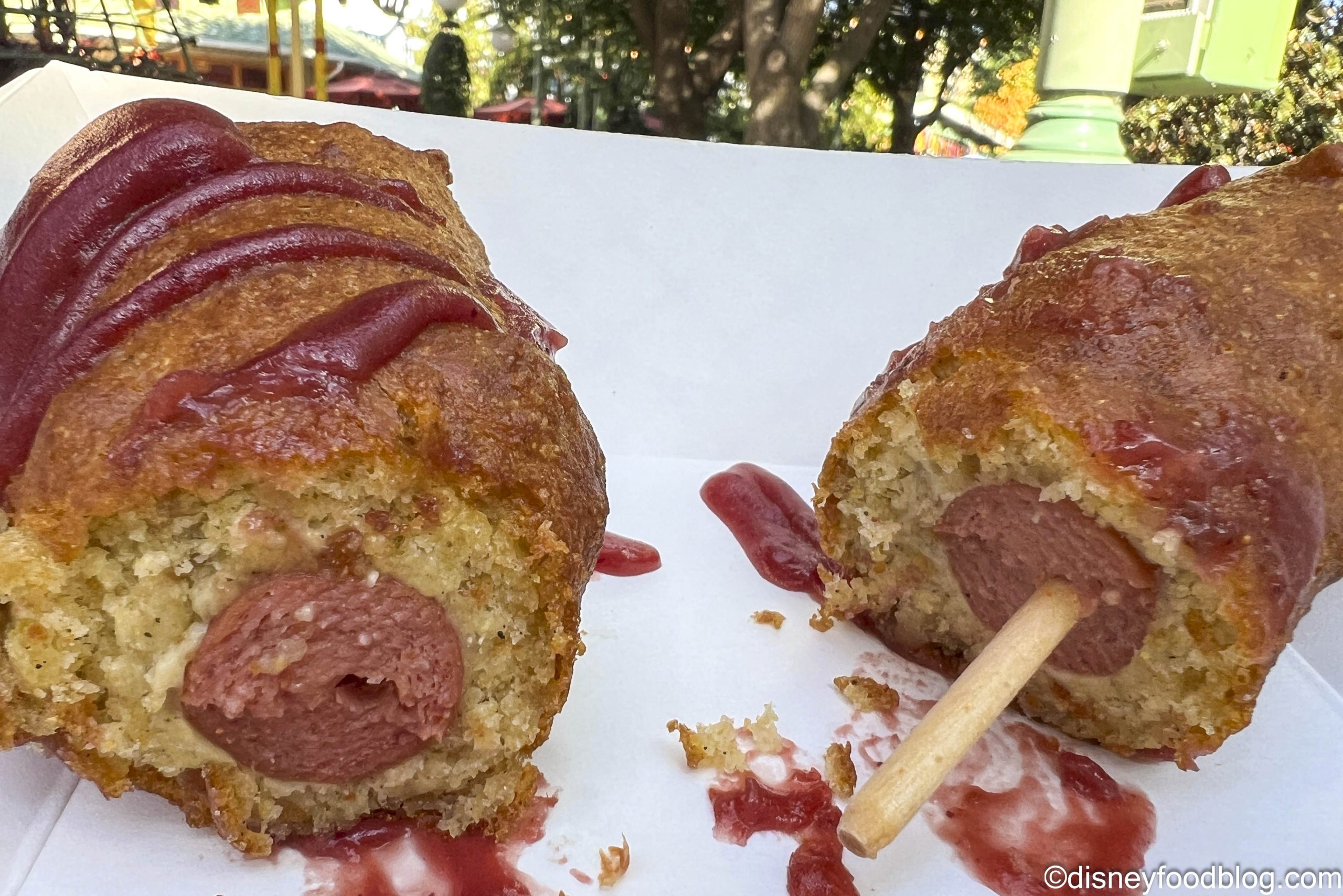 - Holiday Stuffing Corn Dog dipped in seasoned corn batter, fried to a golden brown, and topped with cranberry-mustard sauce (New) — $13.29 served with a Cuties Mandarin or Small Bag of Chips