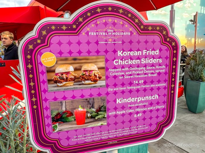- Kinderpunsch with apple cider, hibiscus, and a cherry (Non-alcoholic beverage) — $6.49