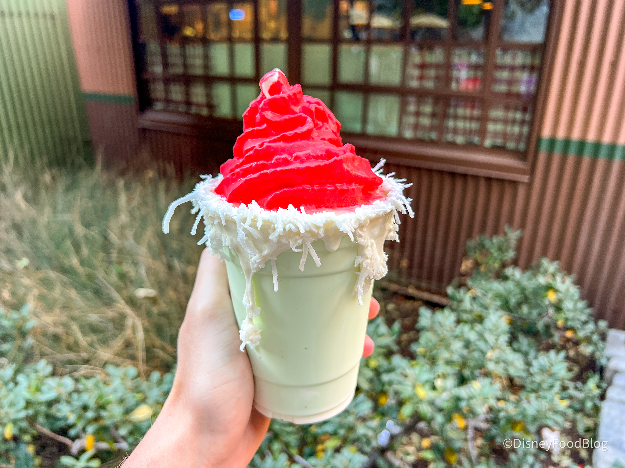- Santa Hat Shake in a marshmallow and coconut-rimmed cup topped with whipped cream and marshmallows (New) — $9.29