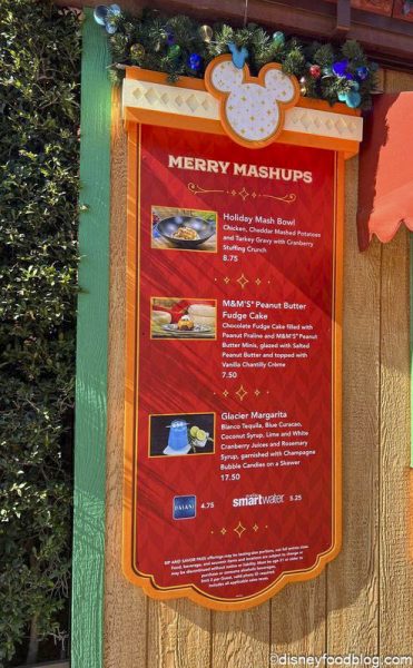 - Holiday Mash Bowl: Chicken, cheddar mashed potatoes, and turkey gravy with cranberry stuffing crunch (New) – $8.75