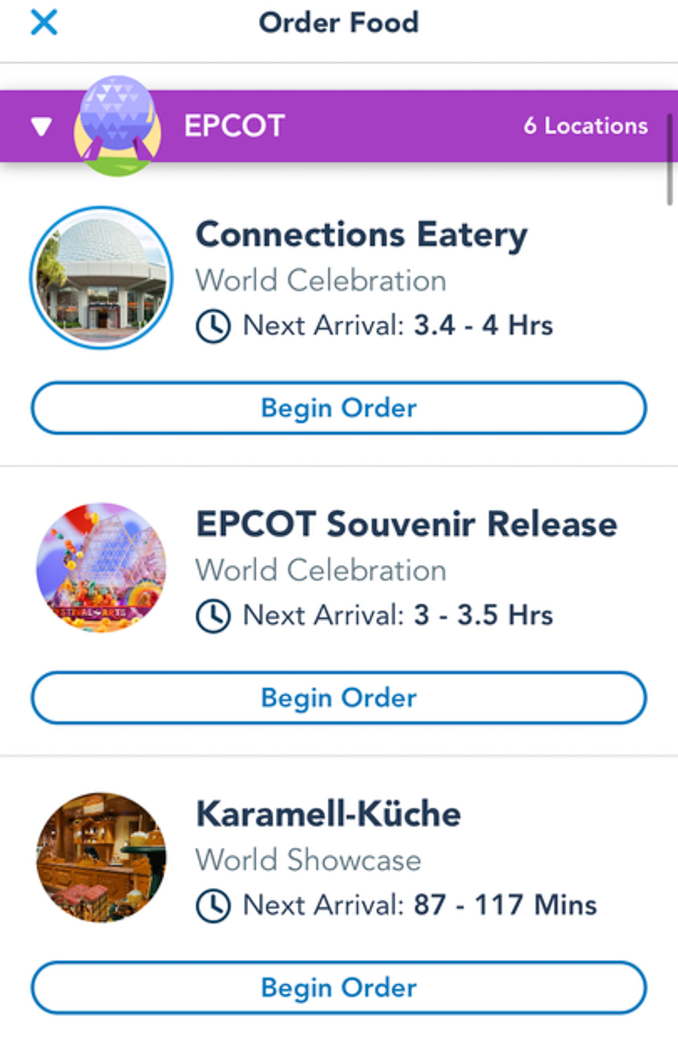 You’ll find “EPCOT Souvenir Release” when you select “Order Food” from the main menu options in the My Disney Experience app.