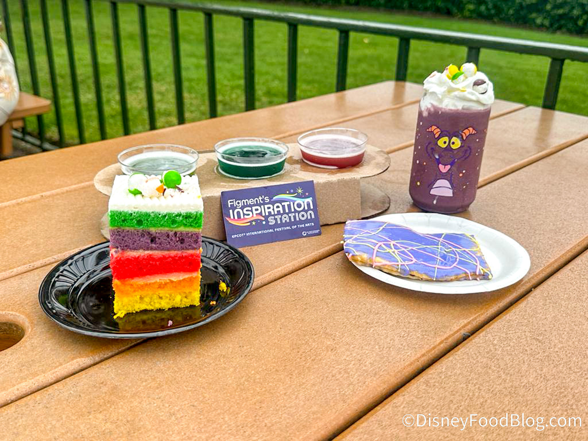 This Figment-inspired booth (which is located in the Odyssey) was brand new in 2023 and is BACK for 2024! You’ll find treats and beverages bursting with vibrant colors and flavors. P.S. You’ll find the already famous FIGMENT Popcorn Bucket here!