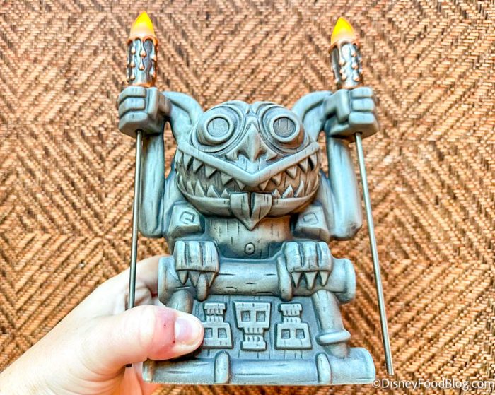 Finally, we think that Trader Sam’s bar would approve of this Mad Hatter tiki mug. This one holds approximately 10 ounces of liquid, making him the smallest of the trio. We’re pretty impressed that Hatter’s iconic hat doubles as a CUP. If only all hats could do the same.