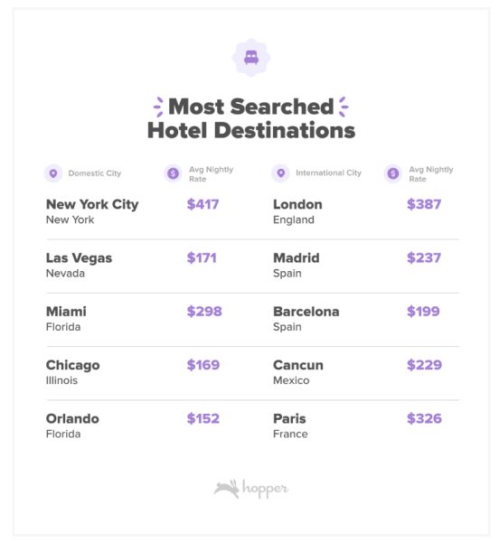 Hotels are also in demand, particularly in Orlando. According to Hopper, Orlando is the 5th most-searched destination on the app, with hotels there averaging around $152 per night.