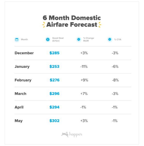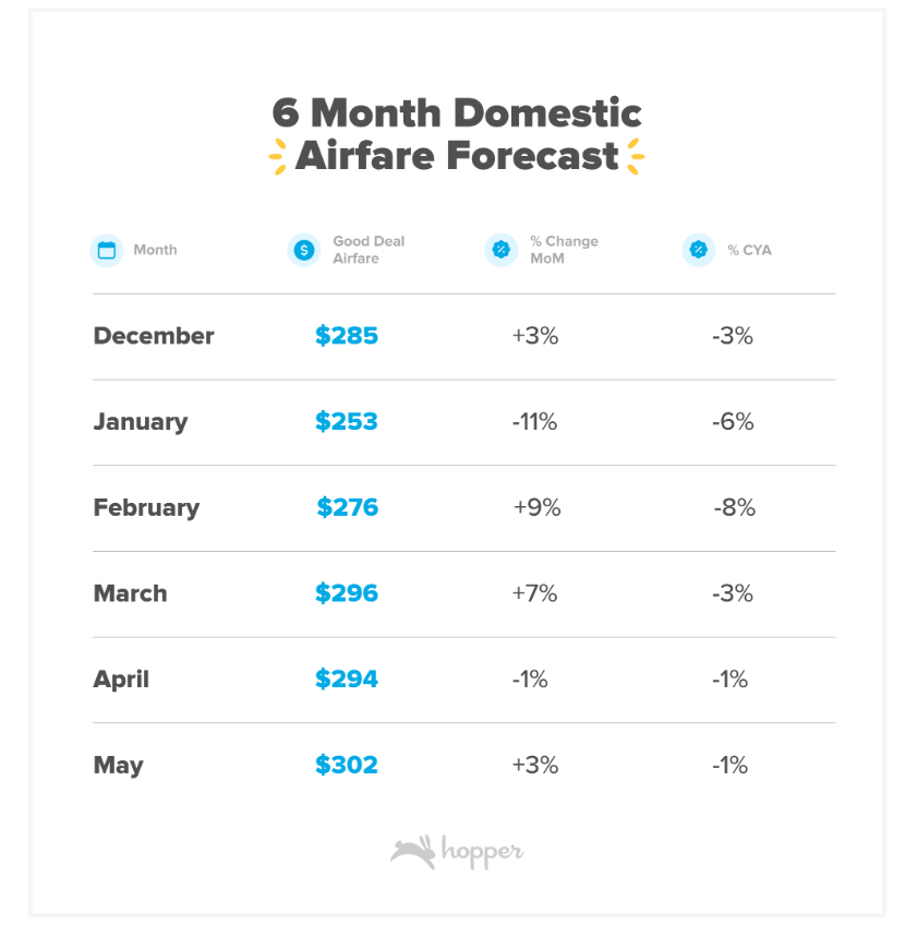 The data also suggests that the cost of domestic airfare will remain below 2023 and pre-pandemic levels for the next five months, though, so if you can’t travel in January, you’re still going to get lower airfare prices than we’ve seen in four years. The data also shows that airlines are adding seats to many destinations, which also helps in bringing prices down for these popular spots.