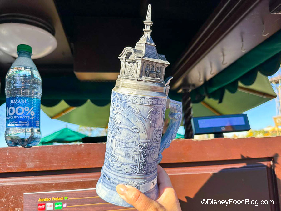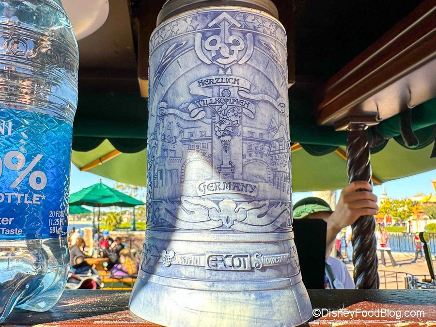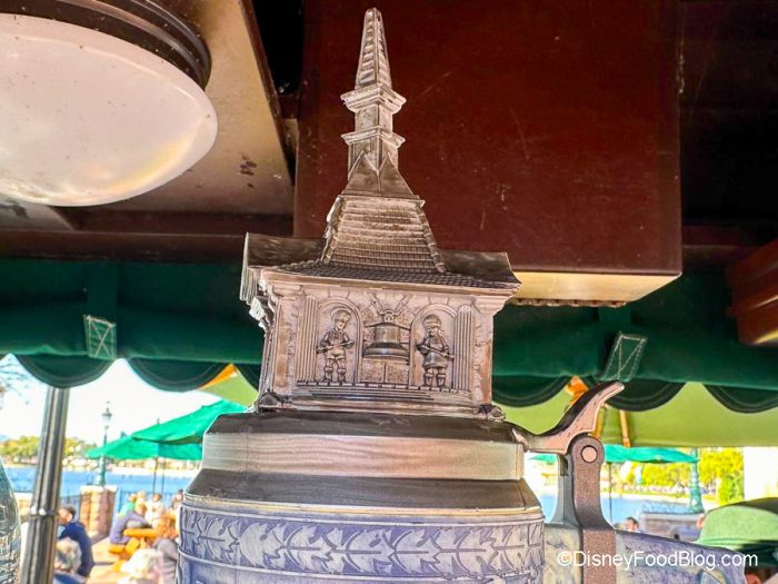 If you’ve ever visited the Germany Pavilion in EPCOT, you may know that sometimes you can find beautiful souvenir steins at the beer and snack spots. Well, a NEW stein is now available, and it’s GORGEOUS. It looks like a traditional German stein you might find in…well…Germany!