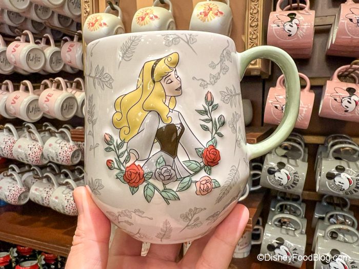 But wait, there’s more! Like we said, we were in Disney mug HEAVEN today. We also spotted a beautiful new Aurora Mug for $16.99. If you love Sleeping Beauty, this one is for you.