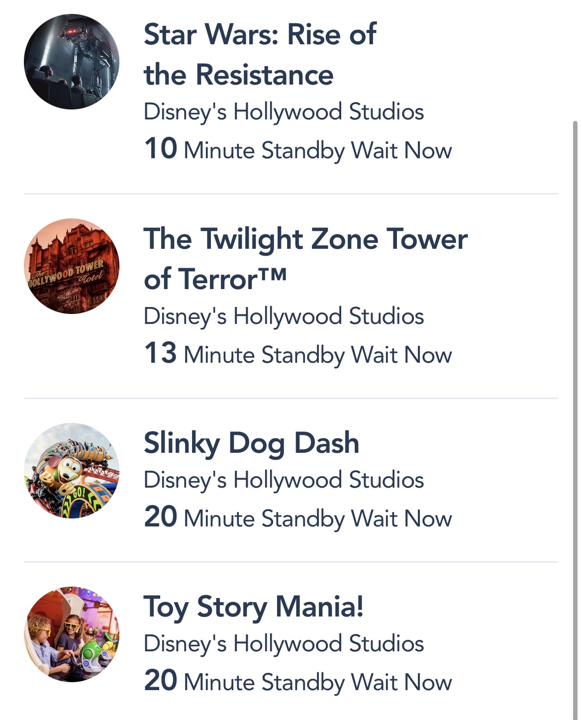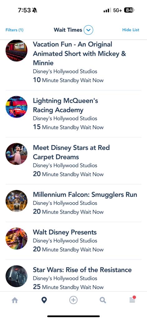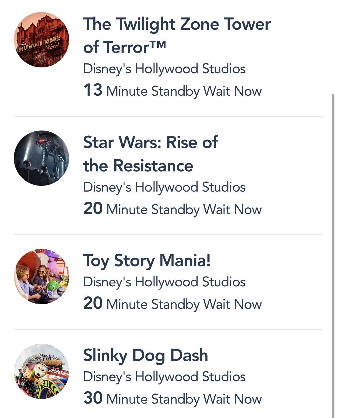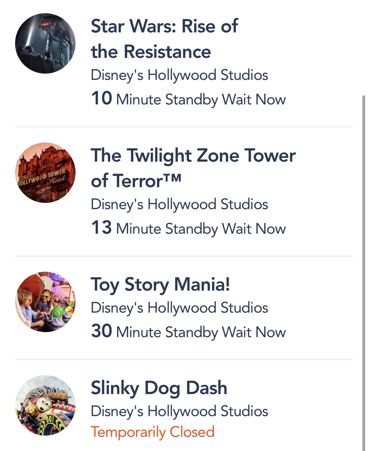 On the higher end, Toy Story Mania was up to a 30-minute wait time! Slinky Dog Dash was still temporarily closed.