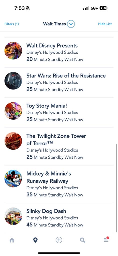 At this time, Slinky Dog Dash and Mickey and Minnie’s Runaway Railway had the highest wait times at 45 minutes and 35 minutes respectively.