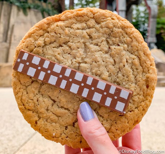 Another special Star Wars treat you can grab in Hollywood Studios with a snack credit is the Wookiee Cookie from Backlot Express. This GIGANTIC cookie is made with two oatmeal cookies, sandwiched together with a fluffy whoopie-pie cream filling. If the Little Debbie Oatmeal Cream Pies are your thing, YOU NEED THIS COOKIE IN YOUR LIFE.