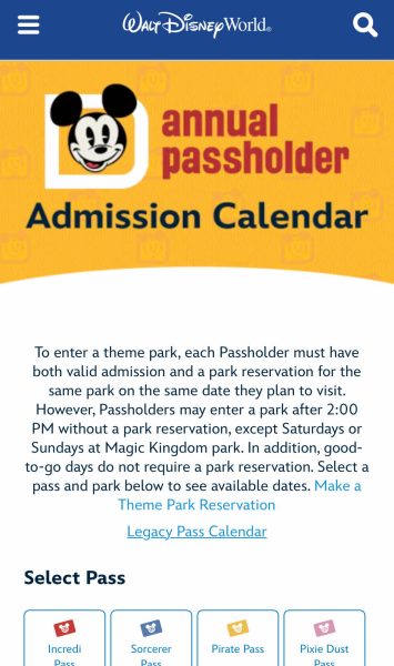 You’ll just select your pass type and the park you want to visit to see which dates are “Good-to-Go.”