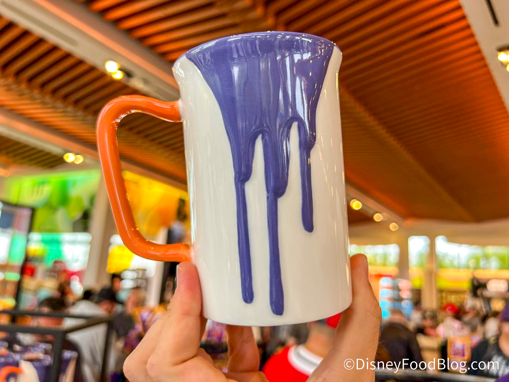 The back of the mug has paint dripping down it.