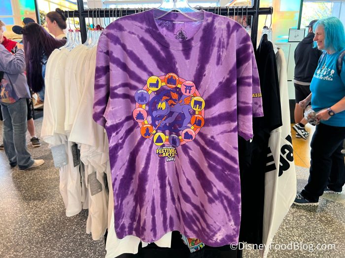 This purple Tie-Dye Festival of the Arts Shirt for $39.99 is WILD and has all the World Showcase Pavilions on it.