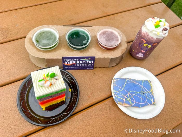 Over at Figment’s Inspiration Station at The Odyssey, you’ll find a variety of available items. There are a couple of treats and several drinks (including a rainbow beer flight!).