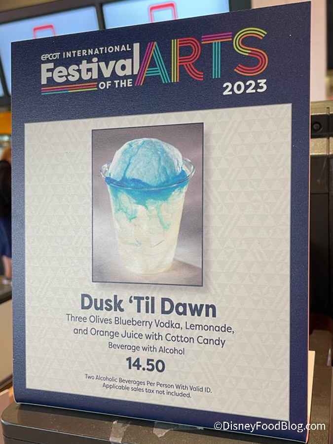 🍊 Orange-Lemonade Cocktail: Three Olives Blueberry Vodka, lemonade, and orange juice with cotton candy – $15.50 pic.twitter.com/h3AVhFAzcV— Disney Food Blog (@DisneyFoodBlog) January 12, 2024
