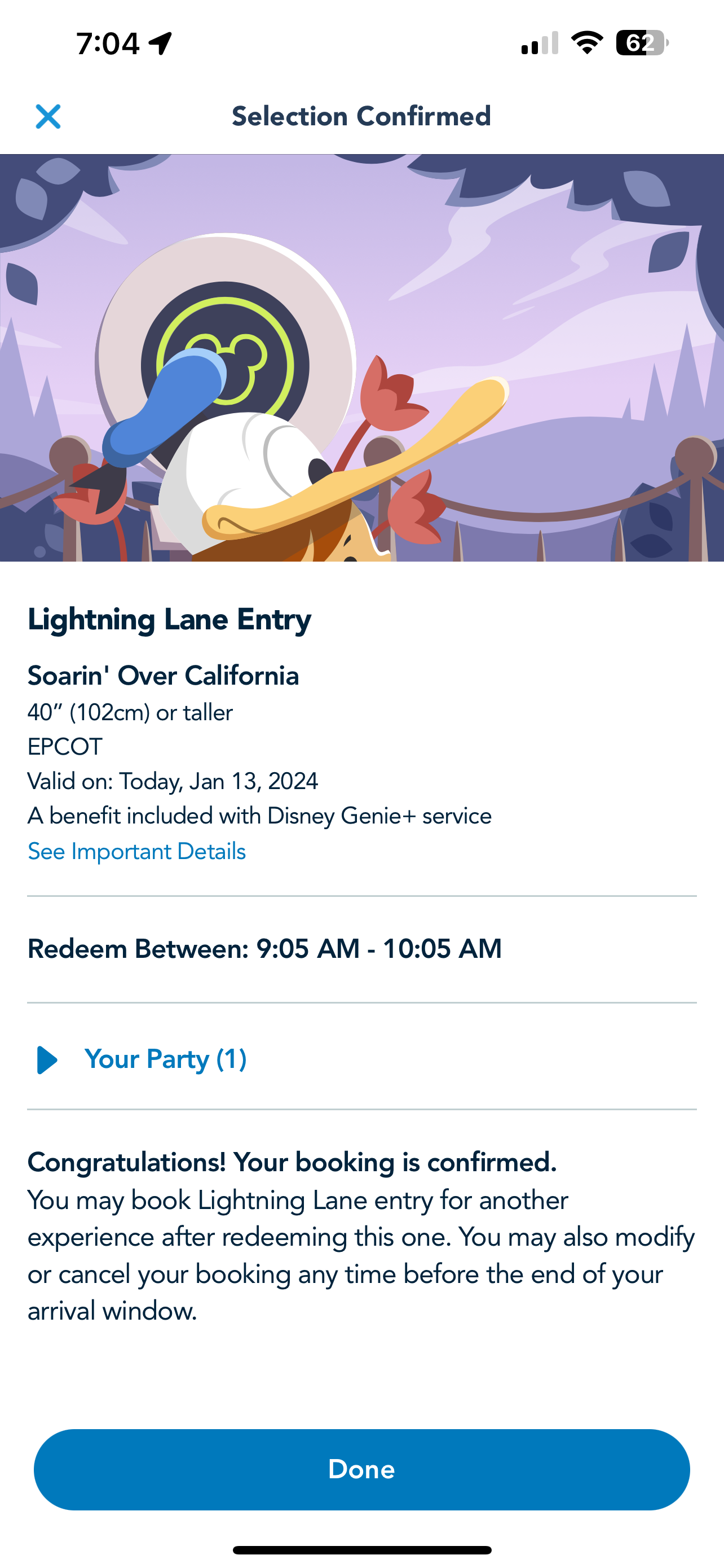 At the time, we weren’t sure if this was a mistake or something that was going to be sticking around for Passholders. But now, we have confirmation that it is no longer a problem! On January 13th, we had a park pass reservation for Disney’s Animal Kingdom, but we wanted to hop over to EPCOT to ride Soarin’ Over California.
