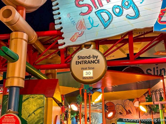 The After Hours Events at Hollywood Studios run from 9:30 PM to 12:30 AM, but when you buy a ticket, you can get into the park anytime after 7 PM. That means you’re in the park for a couple of hours before it closes to daytime visitors. On the night we went, the wait for Slinky Dog Dash was 45 minutes at 8:30 PM, and though we suspected that would drop pretty quickly with daytime visitors exiting the park, we decide to wait to ride.