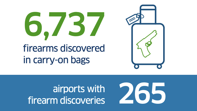 “We are still seeing far too many firearms at TSA checkpoints, and what’s particularly concerning is the amount of them loaded, presenting an unnecessary risk to everyone at the TSA checkpoint,” TSA Administrator David Pekoske said in a press release. “Firearms and ammunition are strictly prohibited in carry-on baggage. Passengers are only allowed to travel with an unloaded firearm, and only if they pack it properly in a locked, hard-sided case in their checked baggage and first declare it to the airline at the check-in counter.”