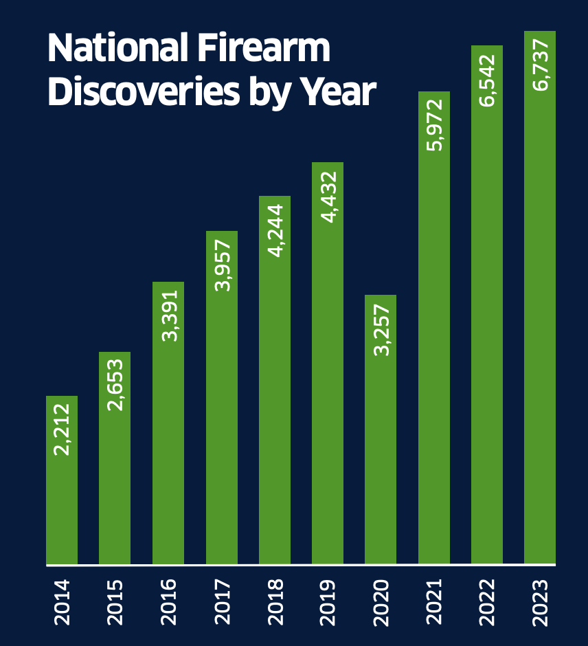 Here’s a look at the top 10 airports with the most confiscated firearms in 2023: