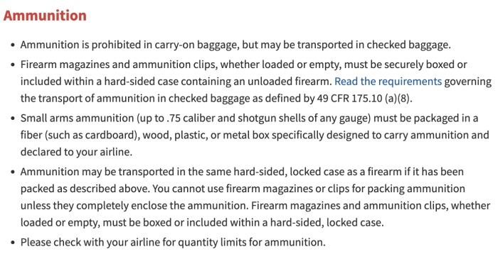 And here are the official TSA rules for traveling with ammunition: