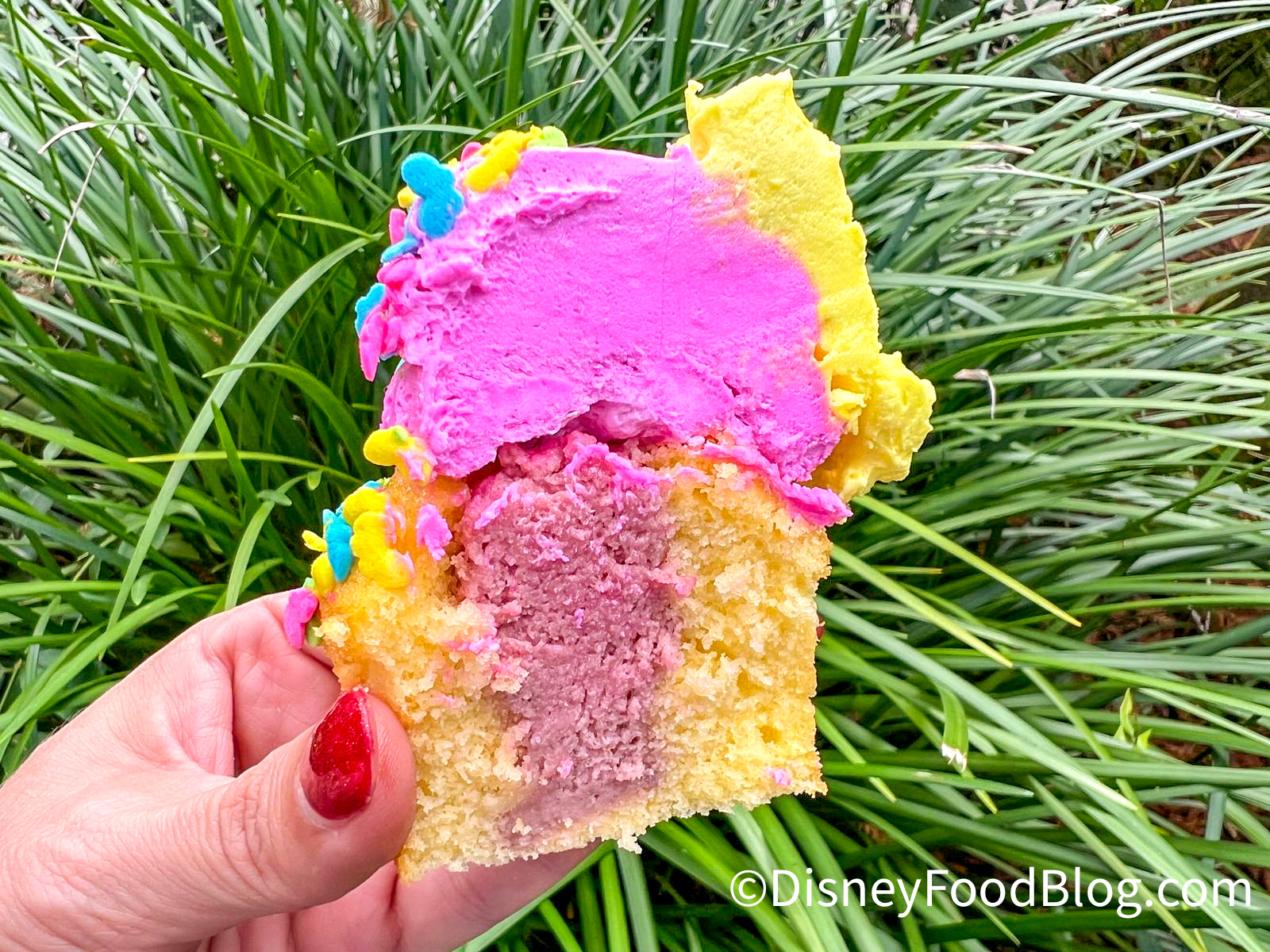 Over in Animal Kingdom you can head to Restaurantosaurus for not one, but TWO new snacks. The first is the Dragonfly Cupcake for $6.49. This is lemon cake with raspberry mousse filling, vanilla frosting, and a chocolate dragon fly piece.