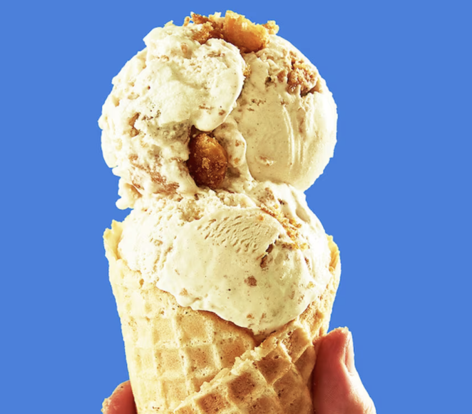 - Cinnamon & Honey Fried Chicken Ice Cream: In partnership and support of Black-owned business, Ezell’s Famous Chicken out of Washington State, this savory and spicy ice cream is made with fresh croissants, torn into bits, that are then deep-fried with chicken fat until crispy and then churned into salted vanilla ice cream. A touch of cinnamon, splash of honey, and a shake of secret spices gives you a sweet Cajun heat with pleasant pops and crackles
