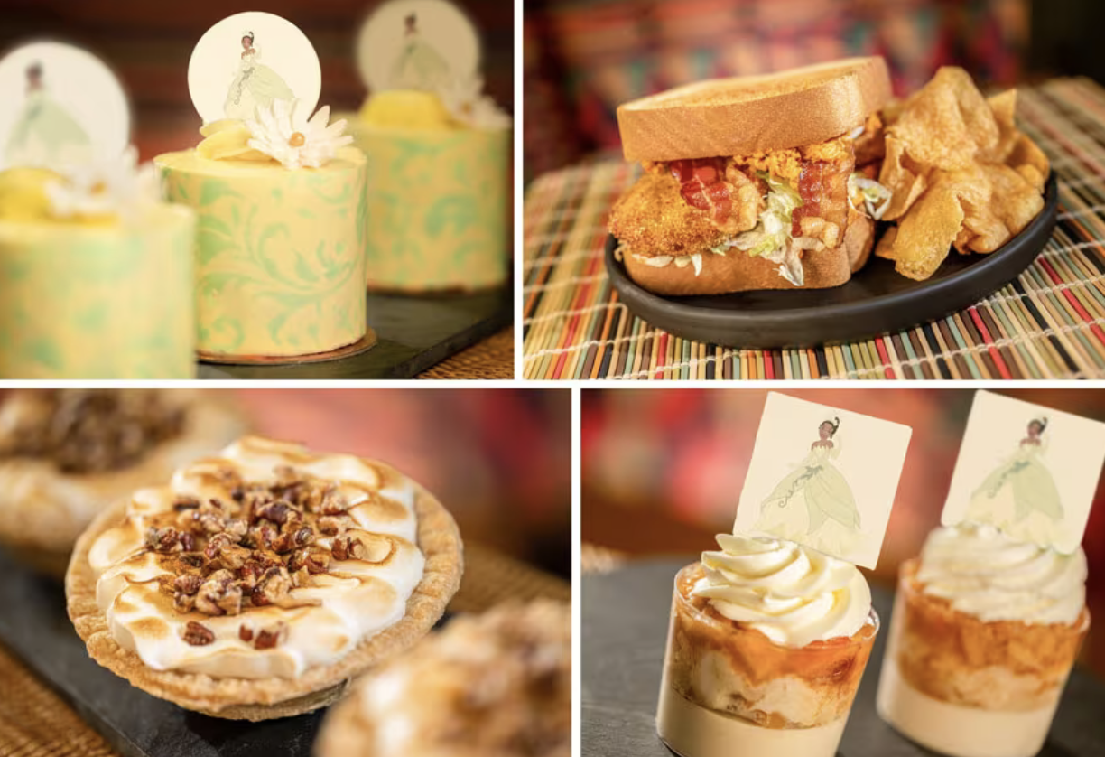 - Tiana’s Petit Cake: Vanilla chiffon cake, lemon Chantilly, and fresh strawberries topped with a fondant flower and a Tiana chocolate piece (New)