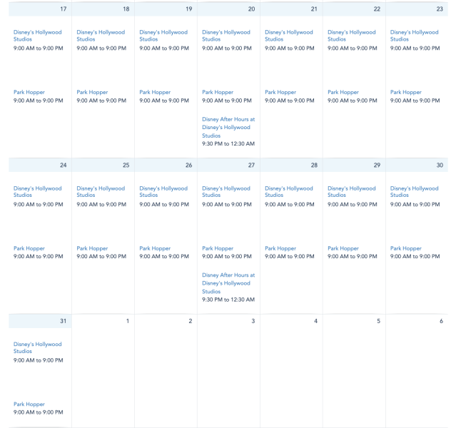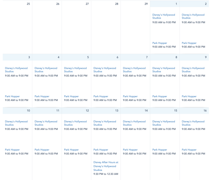 Hollywood Studios is scheduled to be open from 9AM to 9PM every day in March.