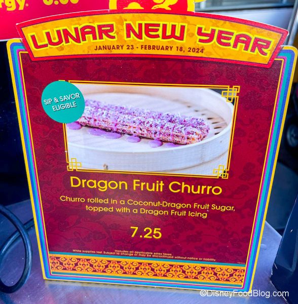 The special Lunar New Year Festival offering you’ll find here is the Dragon Fruit Churro! It is priced at $7.25.