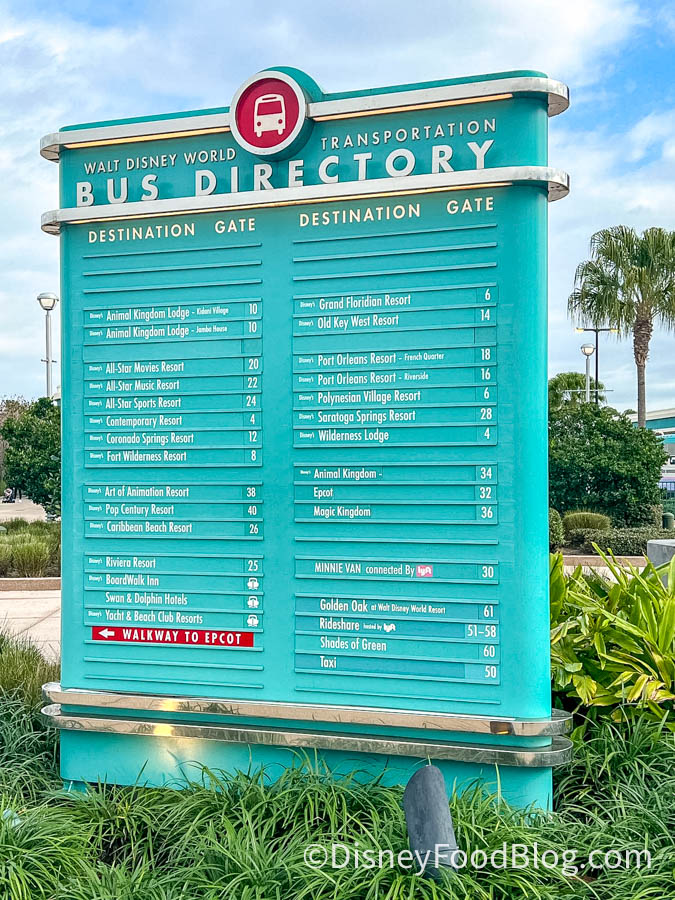 Let’s set the stage. We’re having a lovely time at Disney’s Hollywood Studios when we decide it’s time to take a bus to our next destination. We pull up to the Bus Directory to find out which gate we need to go to like we always do.