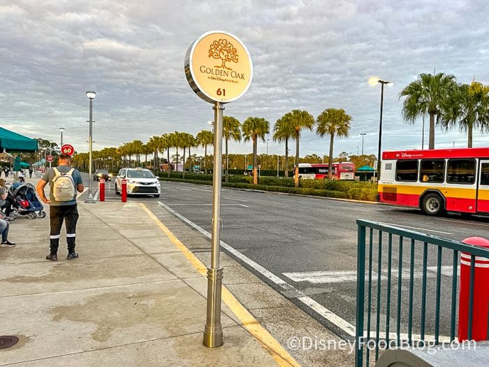 Side note, if you didn’t know, Golden Oak at Disney World is an upscale residential community that’s located on Disney property and is filled with luxurious homes that are built by Golden Oak Realty and Disney Signature Experiences. They’re incredible homes that are stunning to look at and come at a pretty penny! But, enough about that. Let’s get back to finding that bus stop!