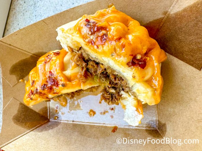 This really is a fun and tasty spin on a classic theme park eat. Just be warned — the quality of the bun can vary here. Some years the bun has been REALLY good. But in 2023, we found it to be quite dry.