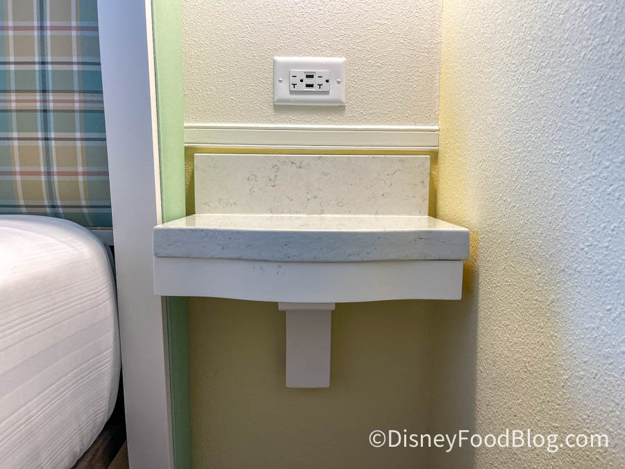 Each of the beds has its own side table. The outlets have USB outlets, as well.