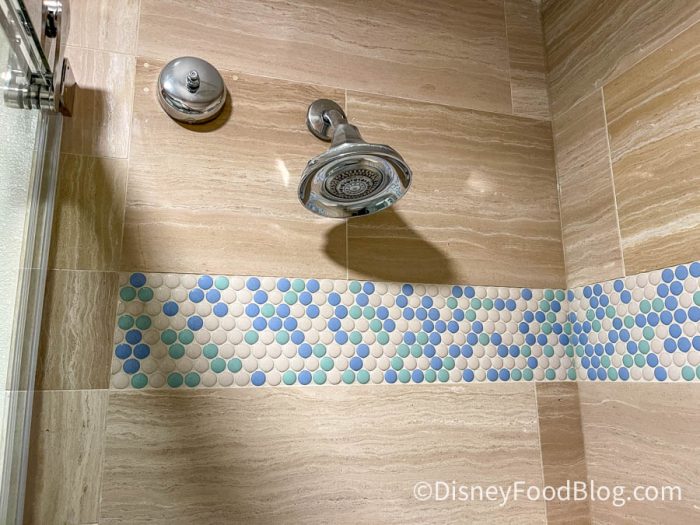As we previously mentioned, earlier we got a look at some of the renovations happening inside BoardWalk Inn, including new hallways and new carpet throughout the hotel, and we noticed that the overall new color scheme is very BoardWalk-like with a lot of teals and whites. Now we know that has carried over to the newly renovated rooms!
