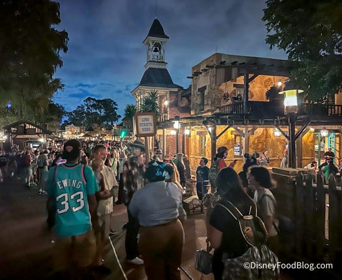 The line extended all the way around Frontierland. You don’t see that every day! Finally, at around 8:45PM, Cast Members closed the line. At that time, the end of the line passed Pecos Bill’s Tall Tale Inn and Cafe.