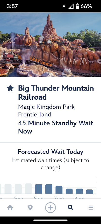 Well, here’s the thing: Magic Kingdom is about the same and there’s a whole lot of nothing going on over at Frontierland. Splash Mountain has been closed for a while as it becomes Tiana’s Bayou Adventure, so the only ride that’s still open in the area is Big Thunder Mountain Railroad. We thought maybe the Country Bear Jamboree closure might have impacted wait times, especially in Frontierland, but Big Thunder Mountain Railroad was at 45 minutes when we checked, which is about what it was the day before.