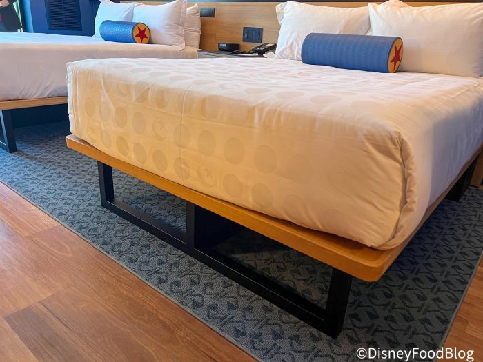 Coming out of the bathroom, you’re greeted by two raised beds (with all the Disney/Pixar touches!)