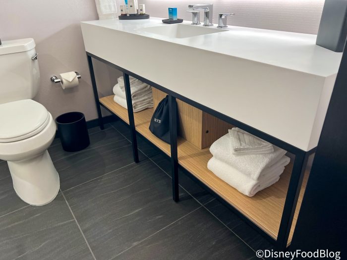 On the opposite side, you’re greeted by the bathroom.