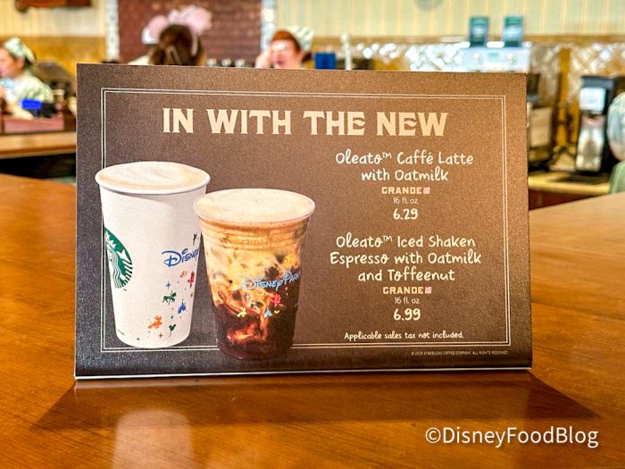 At the Starbucks located inside Main Street Bakery, you can find the Oleato Golden Foam Iced Shaken Espresso for $6.99 and the Toffeenut and Oleato Caffe Latte with Oatmilk for $6.29.