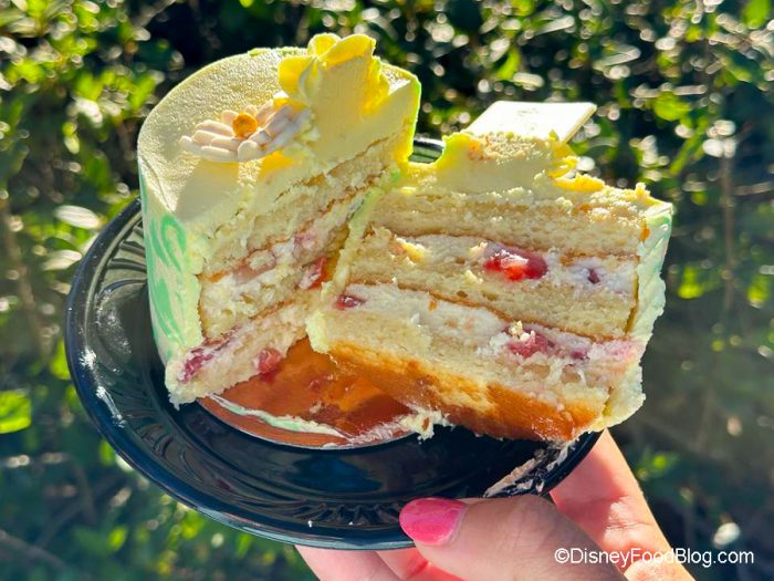 Also, this cake is a great use of a snack credit on the Disney Dining Plan, so if you’ll be visiting Disney World soon with the Dining Plan, this is one snack you should keep in mind. It’s also bigger than a normal cake slice, so it’s shareable!