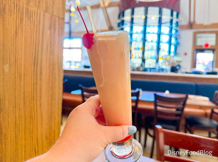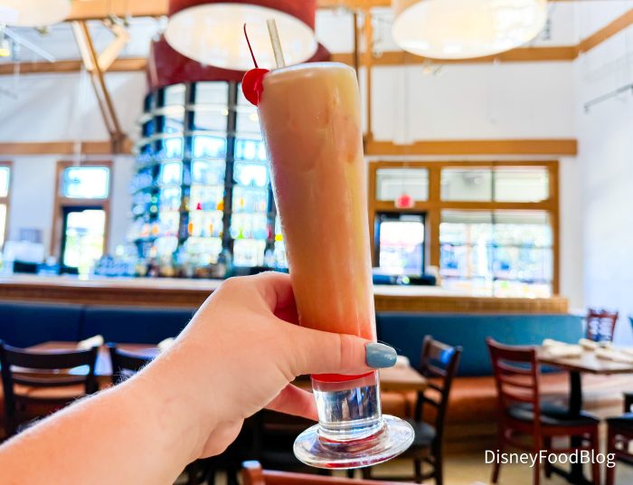 All of the grenadine sits at the bottom of this drink, and it is very sweet and offsets the richness very well. Just make sure you mix it around first! After a few sips, the pineapple really started showing through and it balanced out the flavor even more. We couldn’t even taste the alcohol in this drink — so if you order it, be careful!