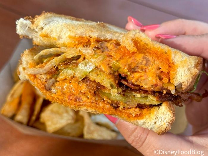 Once we bit into this one, our minds changed for the better. The bacon-pimento spread was the more forefront flavor (against the crispier bacon slices on the sandwich). That was followed by a light crunch as we bit into the crispy-battered coating of the fried green tomatoes held inside. They were thinly sliced so they didn’t take a lot of room but had outstanding flavor to them! If you enjoy eating fried green tomatoes regularly, this one would serve you well in a pinch when you’re looking for something savory.