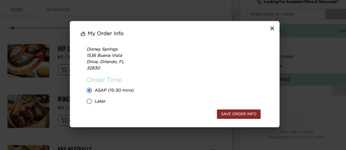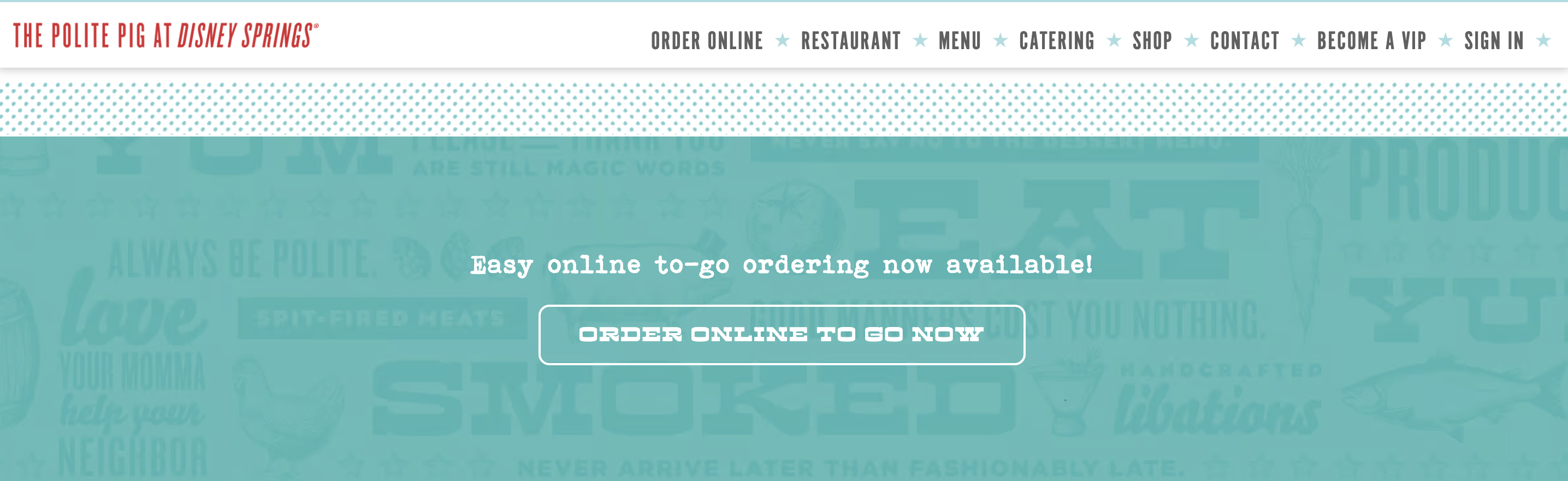 Rather than going through the Disney World app to Mobile Order here, you’ll need to go to the Polite Pig’s website.