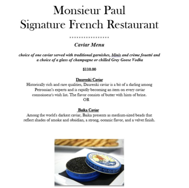 Monsieur Paul is now offering a caviar experience fit for royalty, and it’s causing quite the stir among food lovers and park-goers alike.
