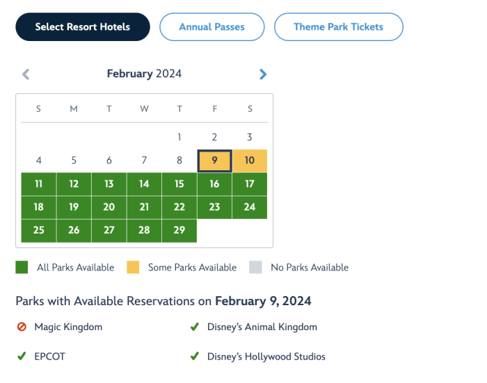 When we had checked previously, both Saturday and Sunday were sold out for all four parks, and Friday the 9th was sold out for some parks. Though today is showing no availability, that doesn’t mean they won’t be refilled again!